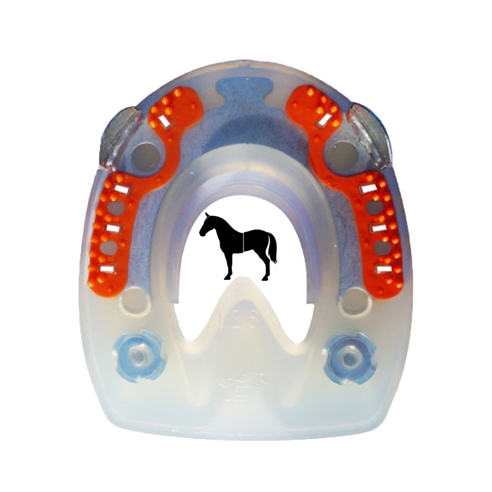 Syntetsko til oval hovform. Fås med eller uden 2 M8 brodder. Dæmper stød og understøtter naturlig hovfunktion.
