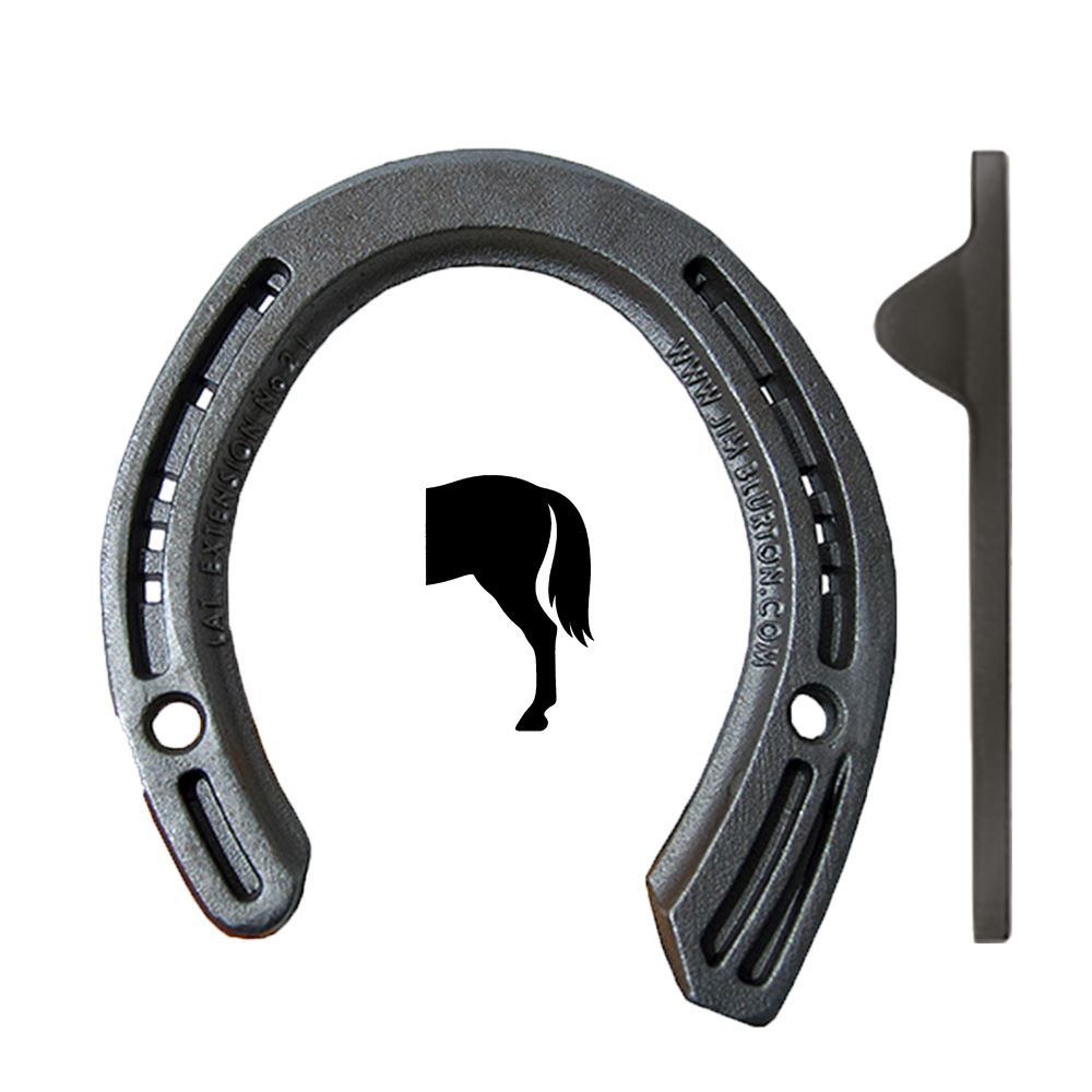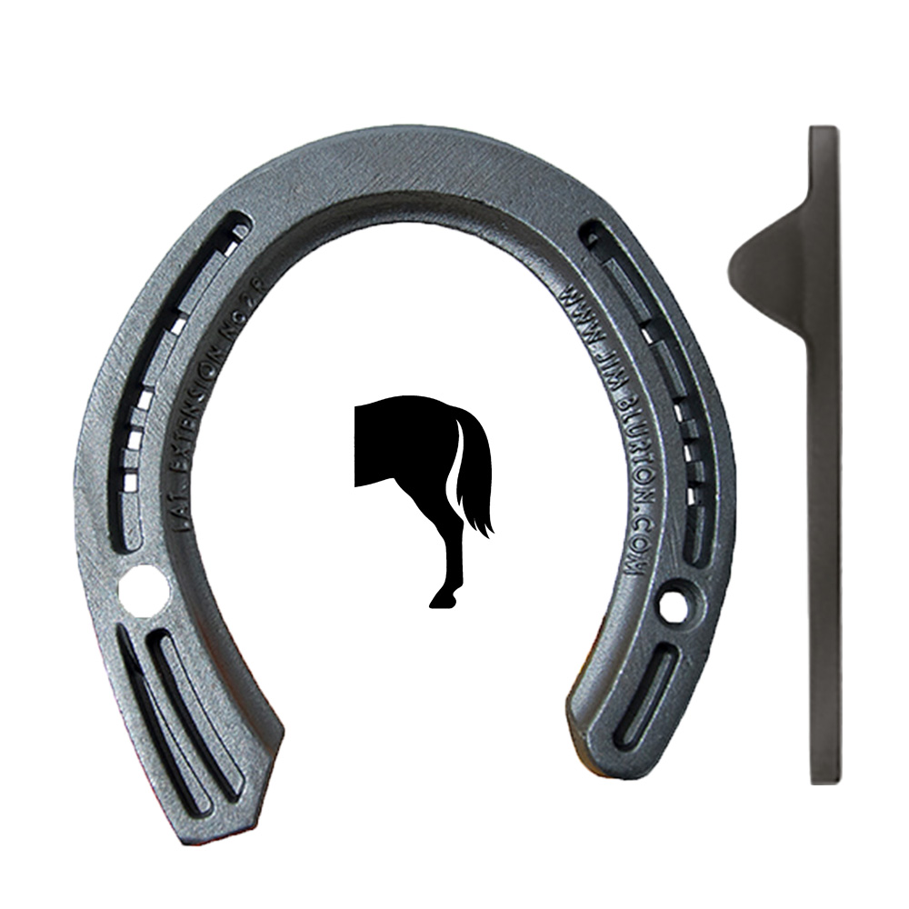 På hvilken side skal den LANGE traktorarmsdel sidde, når skoen er fastgjort på hesten?