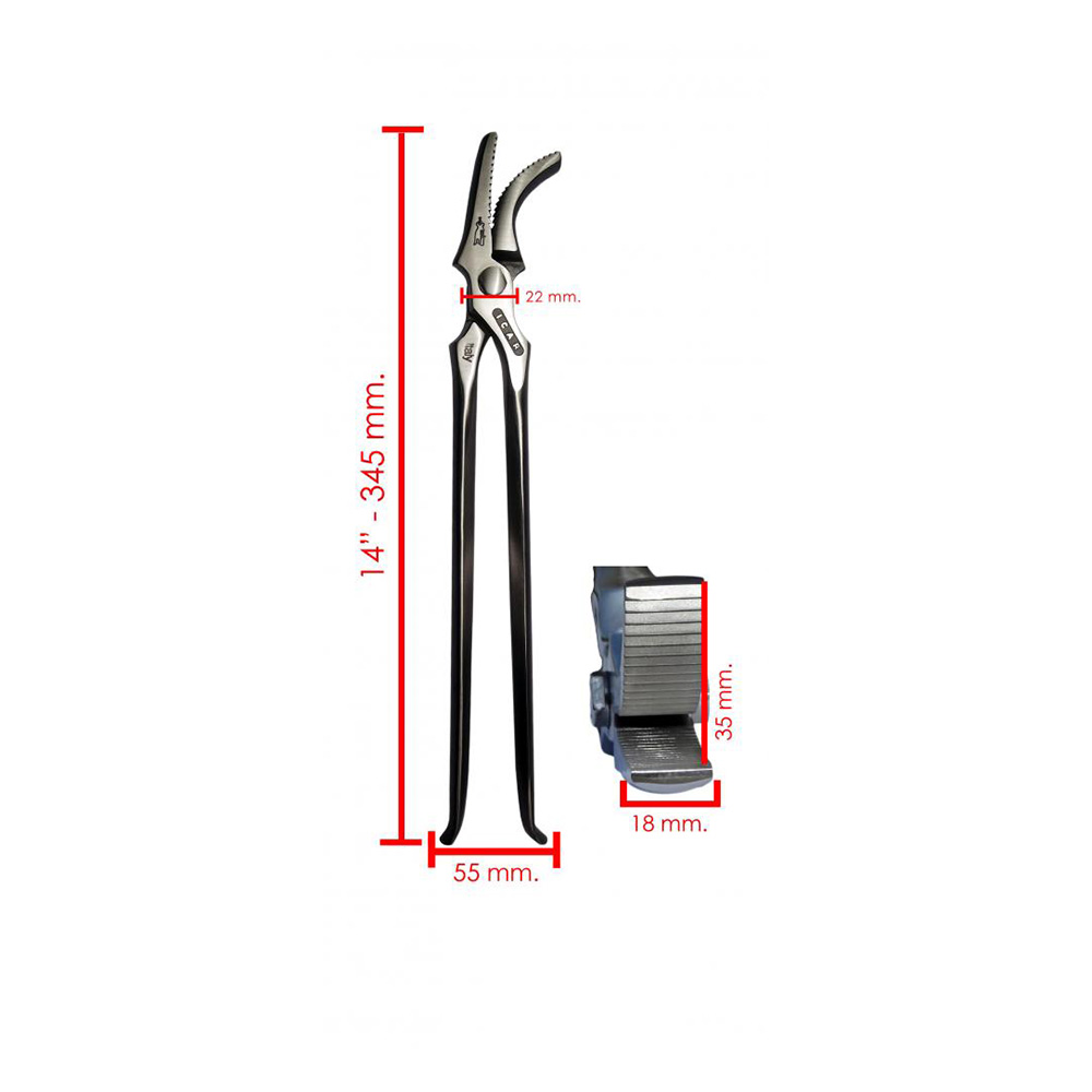 En kraftfuld 14" nittetang fra ICAR, specielt designet til høje sømoptag. Draft Horse-modellen er udviklet for at tilbyde høj præcision og holdbarhed ved arbejde med store heste.