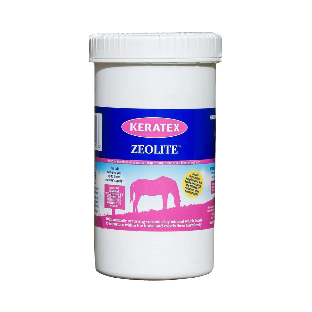Keratex Zeolite™ er et 100% naturligt mineralbaseret lermineral i pulverform, som nemt kan blandes i kraftfoder eller drysses over høet. Produktet kommer fra en fuldt certificeret og sporbar kilde, hvilket sikrer høj renhed og kvalitet. Zeolite er kendt for sine unikke egenskaber, der kan støtte hestens fordøjelse, immunforsvar, udrensning og generelle velbefindende.